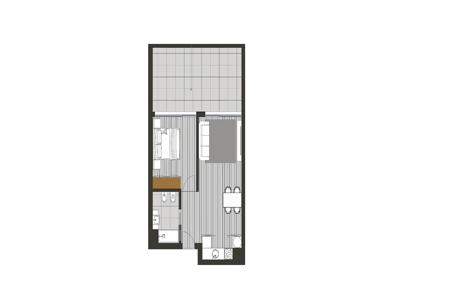 Com uma variedade de tipologias, desde estúdios até apartamentos de três quartos, cada unidade foi projetada com uma arquitetura minimalista que valoriza a entrada de luz natural, criando espaços contemporâneos e confortáveis para os moradores.